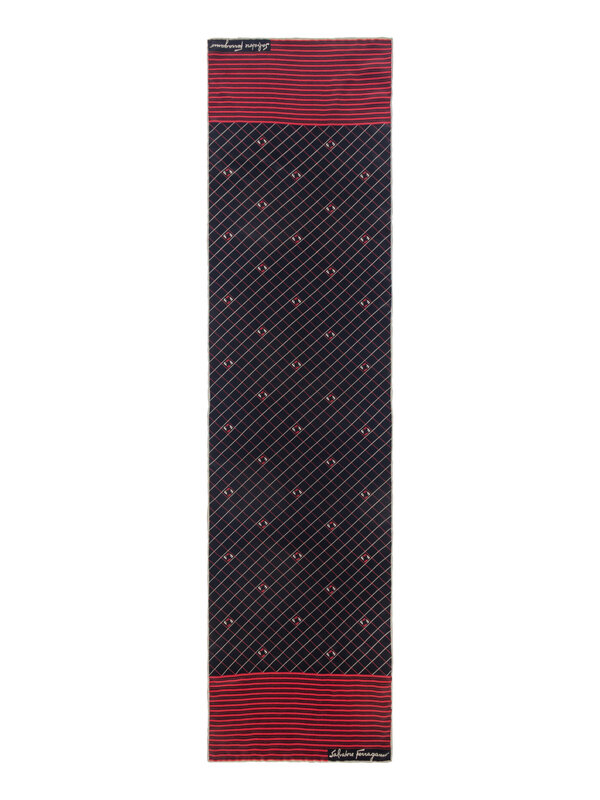 Rectangular scarf in printed silk charmeuse. Hand rolled edges.