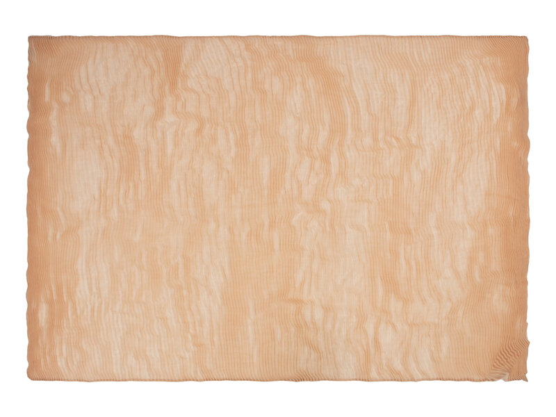 Blush pink cashmere/silk-blend plissé scarf. Stitched edges.