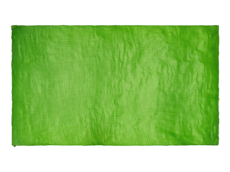 Lime green cashmere/silk-blend plissé scarf. Stitched edges.