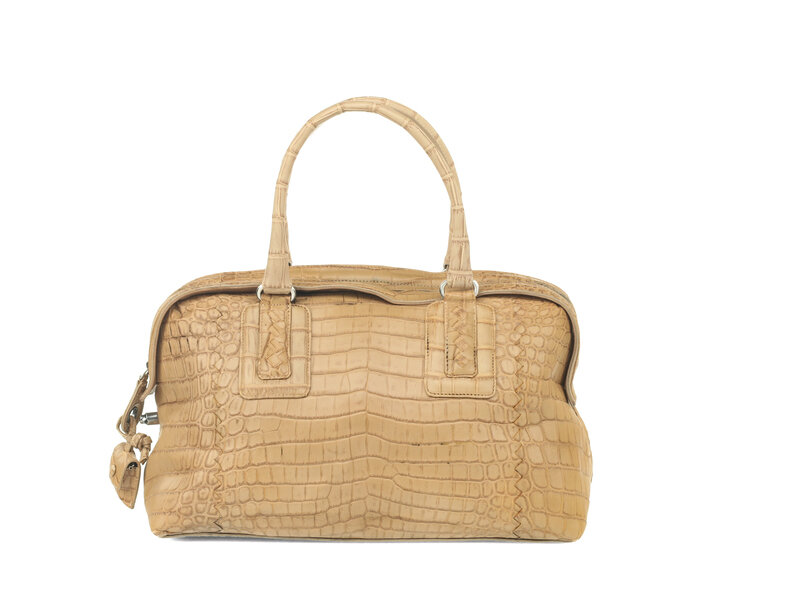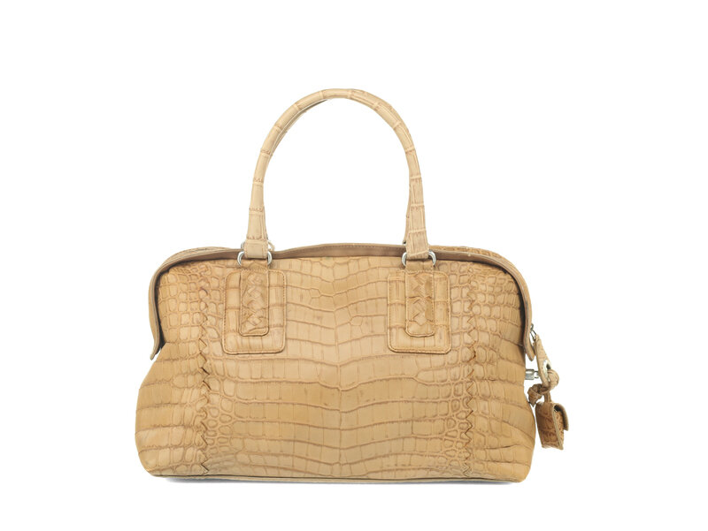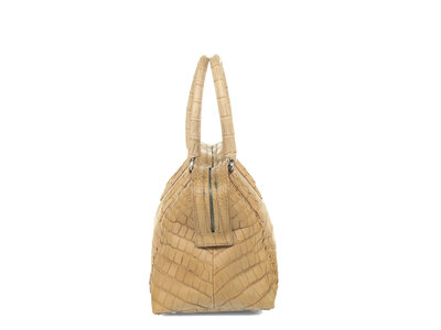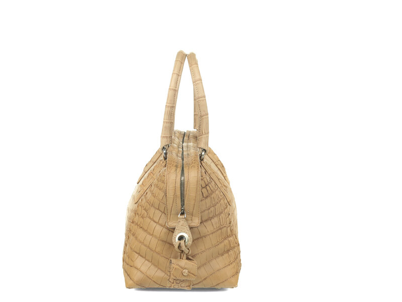 Tote Bag in beige crocodile skin with silver-tone hardware.