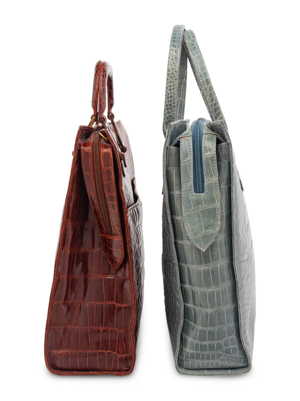 Handbag in brown crocodile skin. With matching removable shoulder strap.