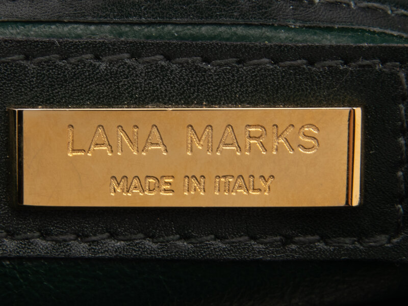 Additional Information: Gold-tone hardware; lined in green lambskin; three main interior compartments, middle compartment with zipper closure; interior zipper pocket; interior slip pocket.