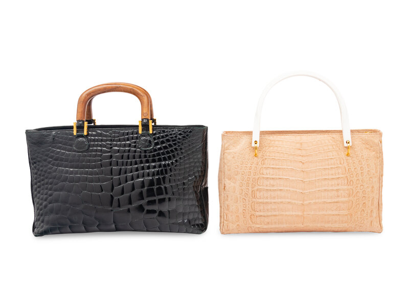 Materials: Crocodile, lambskin, metal, textile, plastic