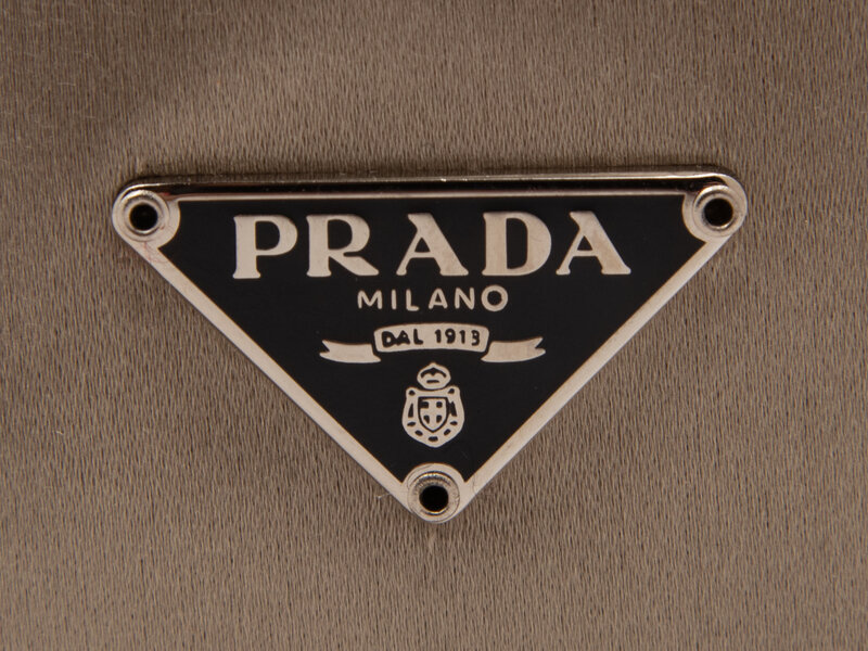 Structured handbag in Taupe Satin with Black Composite Handles.