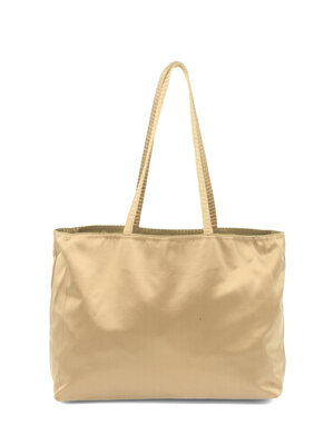 Handbag in Gold-Tone Satin with All-Over Gold-Tone Sequin Embellishments.