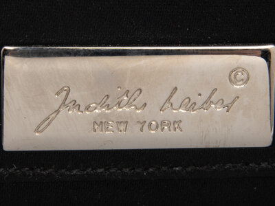 Additional Information: Silver-tone hardware, pull-clasp closure, black silk satin lining, two interior sidewall slip pocket.