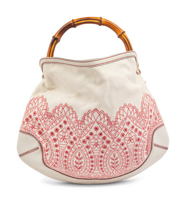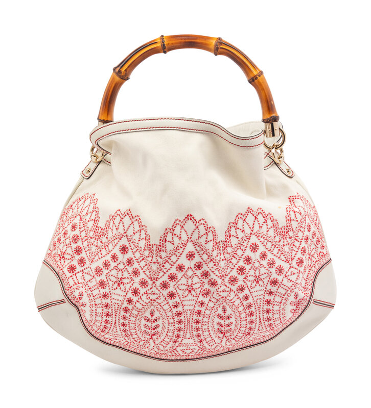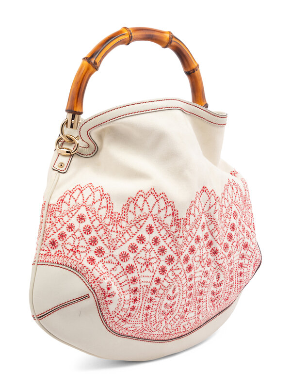 Gucci Bamboo Handle Embroidered Hobo Bag