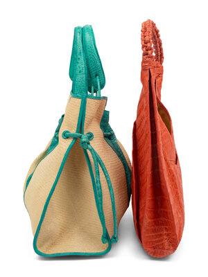 Materials: Crocodile, rattan, suede, metal