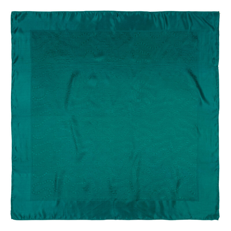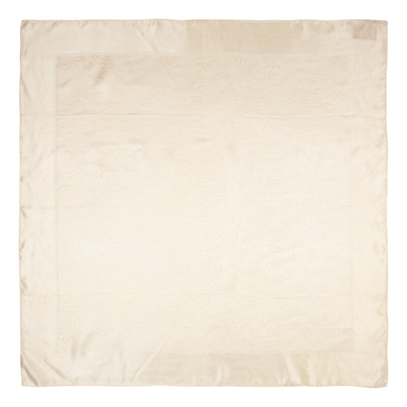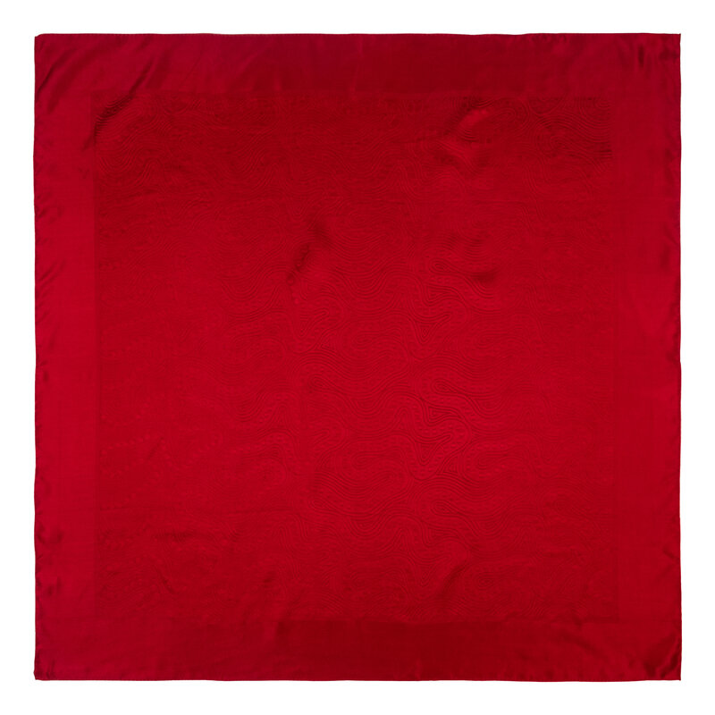 Multicolor printed silk charmeuse scarf. Hand-rolled and raw fringed edges.