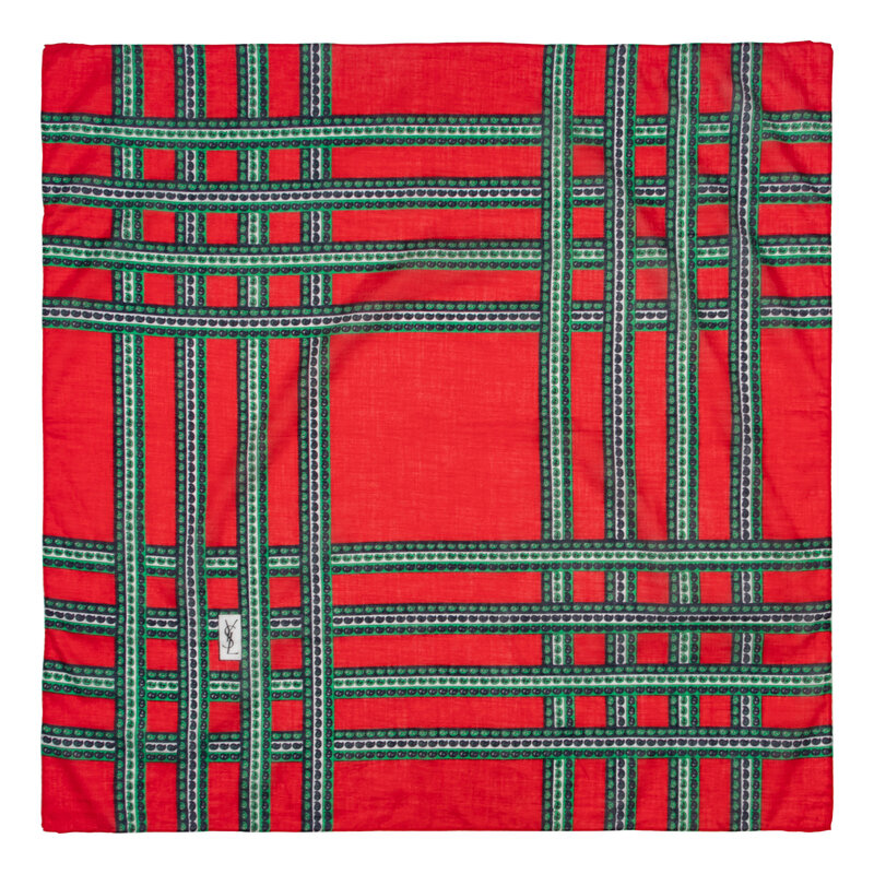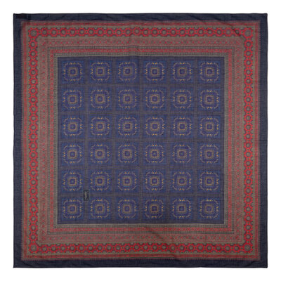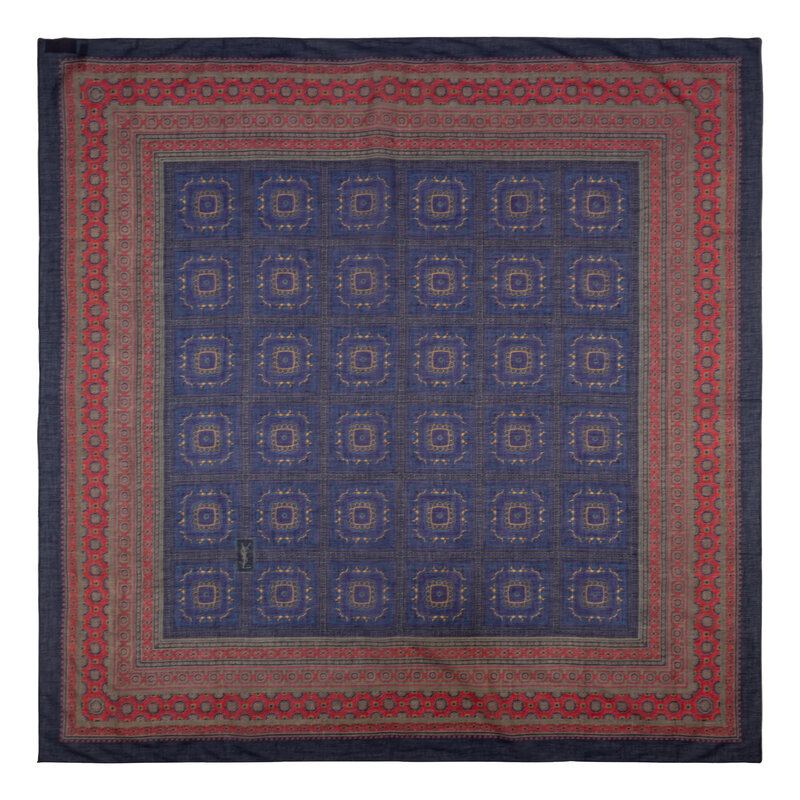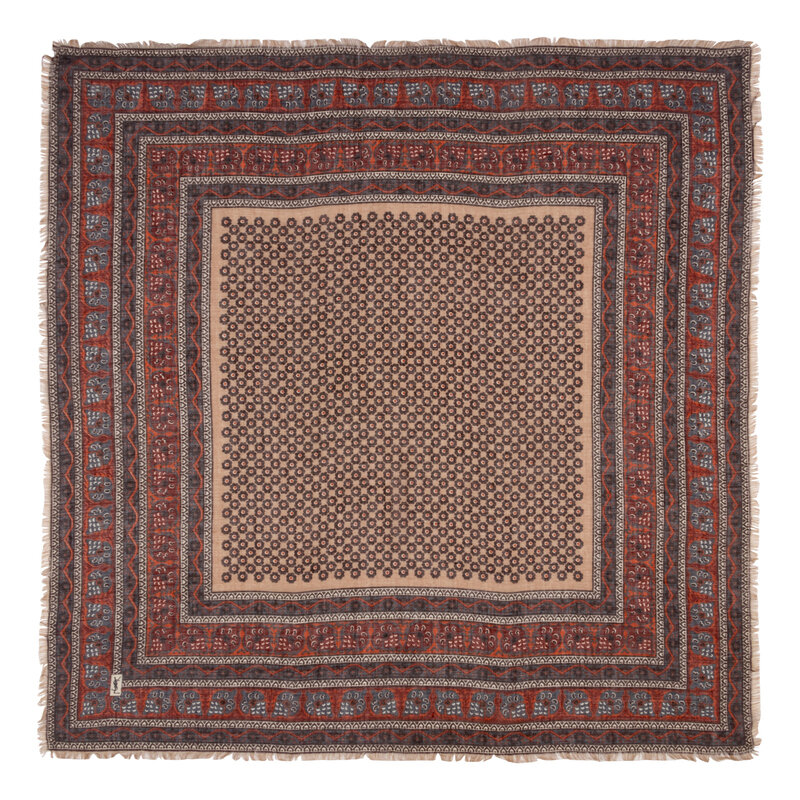 Multicolor paisley-printed cotton muslin square scarf. Stitched edges.