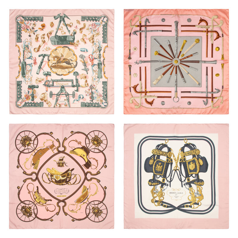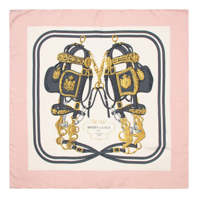 "Brides de Gala" Scarf 90 in printed silk twill. Features rolled and hand-stitched edges.