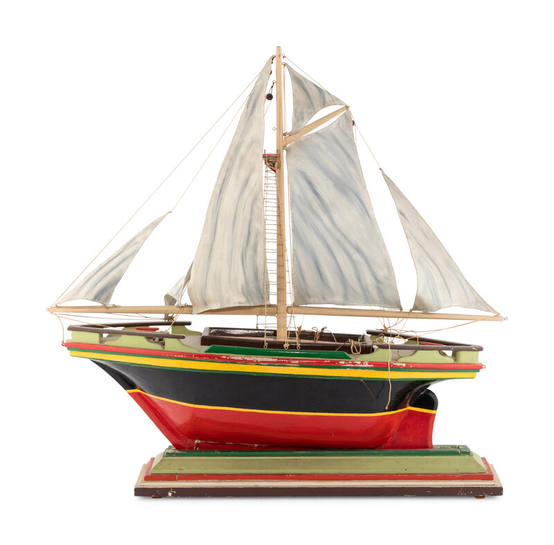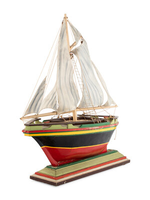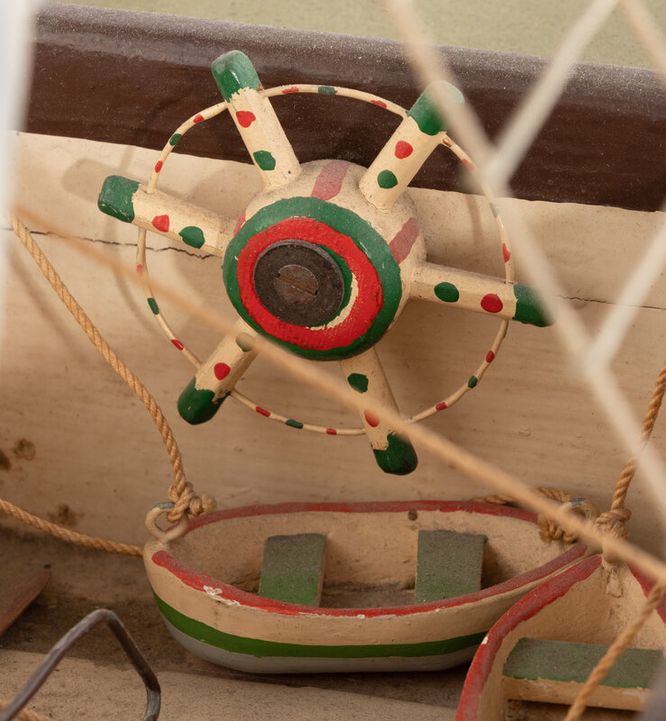 A Carved and Polychrome Painted Wooden Ship Model