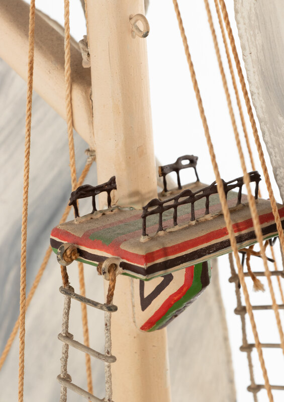 featuring carved wooden sails.