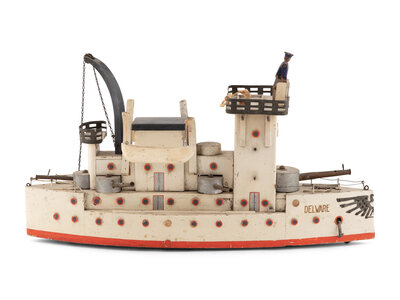 featuring six rotating, spring loaded turrets, two lifeboats and an articulated captain. With rollers to underside.