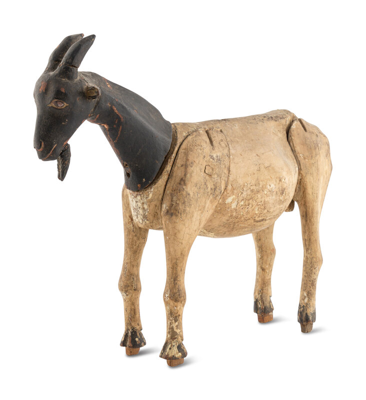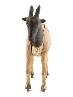 A Carved and Painted Wood Billy Goat Figure