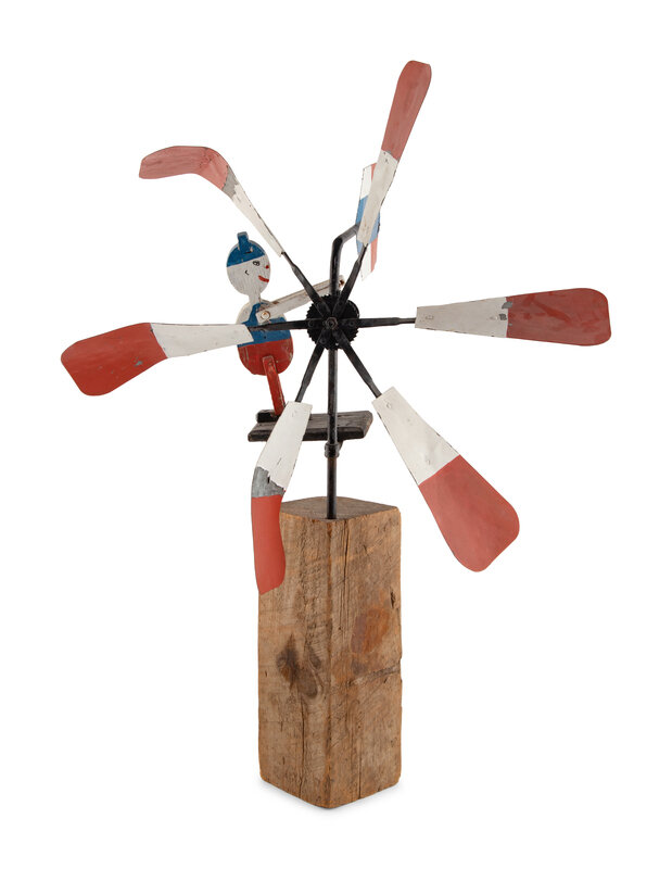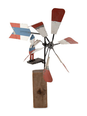 A Painted Wood and Metal Patriotic Figural Whirligig