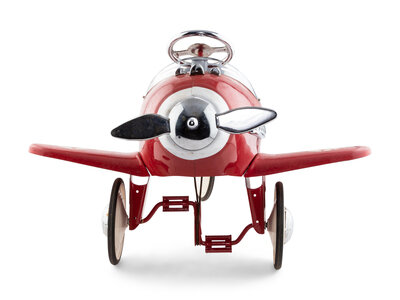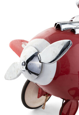 with red body and wings, white propeller, and chrome steering wheel.