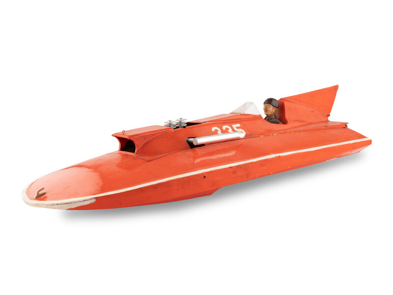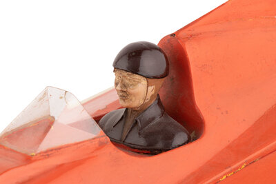 featuring a fiberglass body with white numbering, silver pipes, and seated pilot.