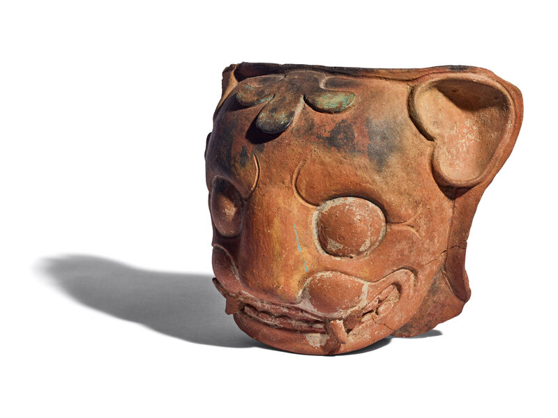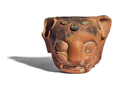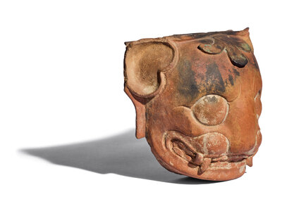 A Maya Red-Ware Incensario Fragment with the Head of a Jaguar