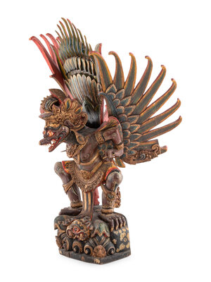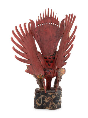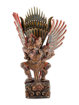 An Indian Carved and Polychrome Painted Wood Garuda Figure