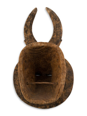 An African Carved Wood Horned Sun Mask
