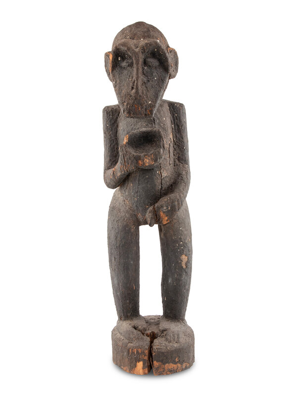 A Carved Wood and Black Painted Monkey Figure