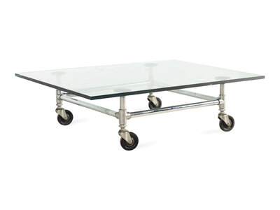 A Glass-Topped Steel Low Table