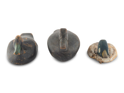 carved and polychrome painted. One is marked on underside early black duck buster Cape Cod ca 1915.