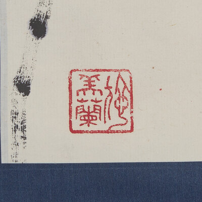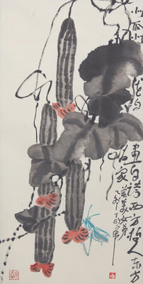 inscribed and dated to a yimao year, equivalent to 1975, and dedicated to Meilan Nvdi, along the right side and with one seal, another lower left.