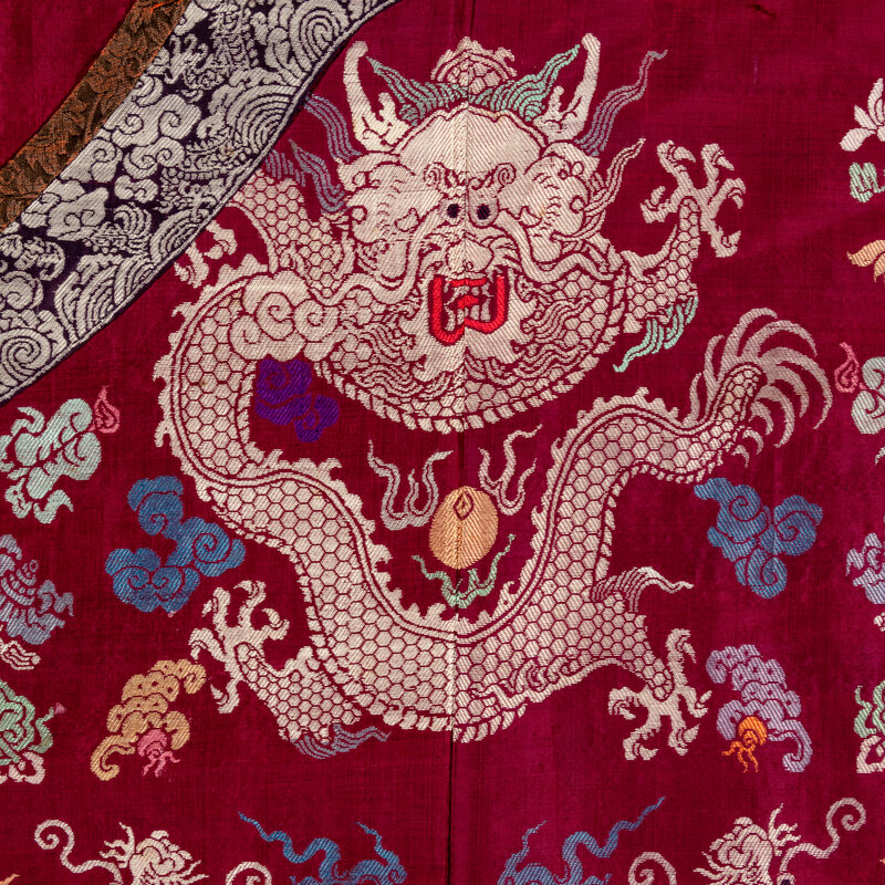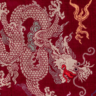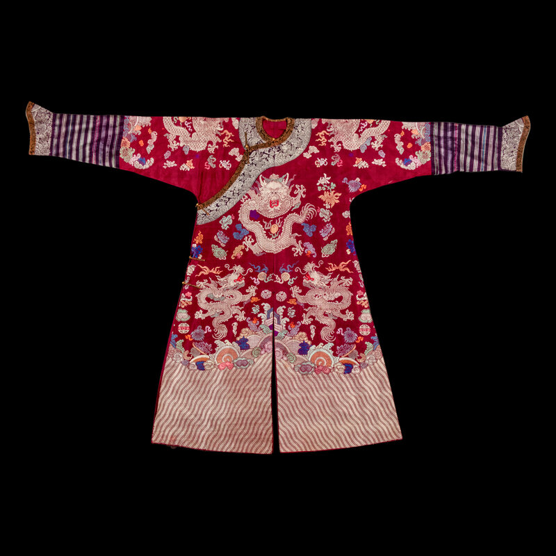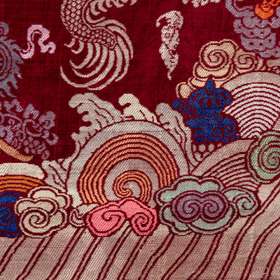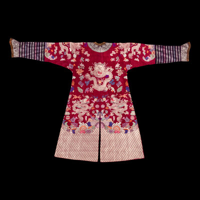 清晚期 絳紅地織錦龍紋吉服