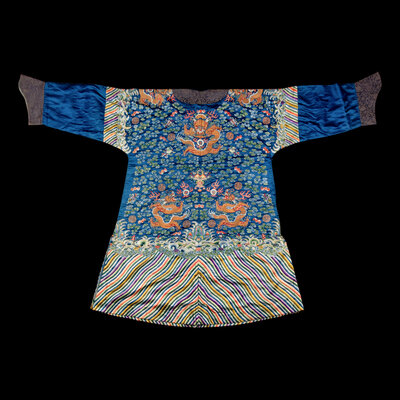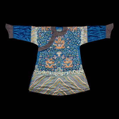 A Chinese Blue Ground Embroidered Silk 'Dragon' Robe, Jifu, 19th Century