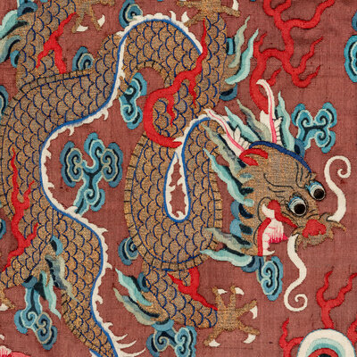 清晚期 醬地緙絲雲龍紋吉服