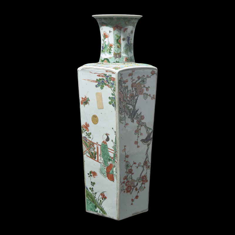 A Chinese Famille Verte Porcelain Square Baluster Vase, Kangxi Period