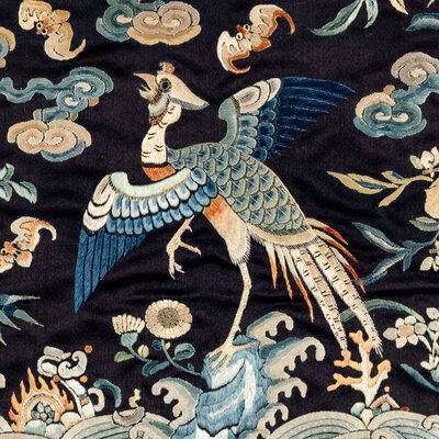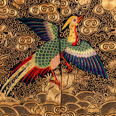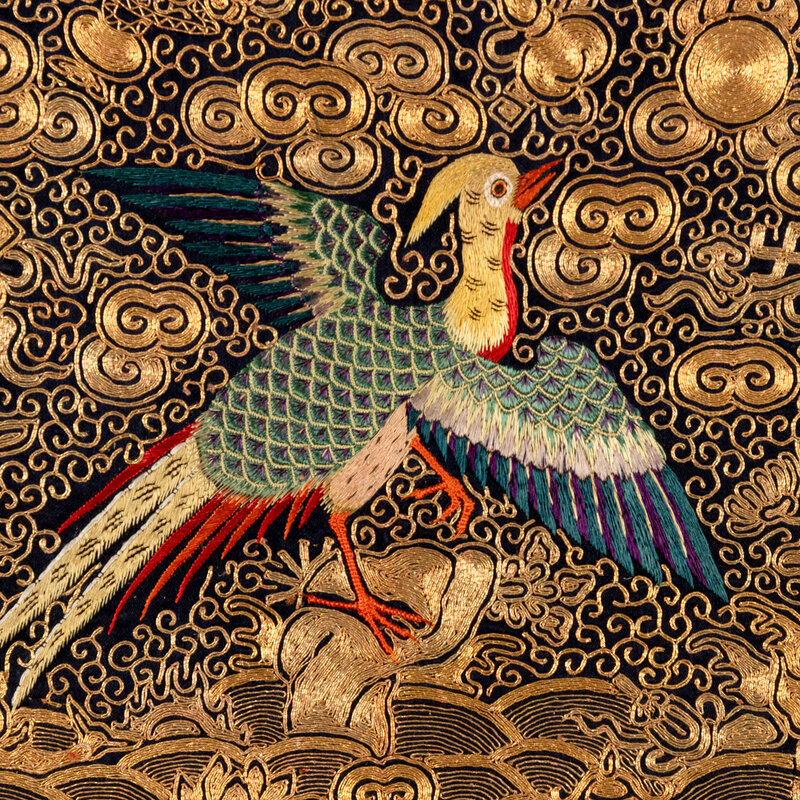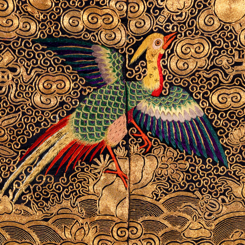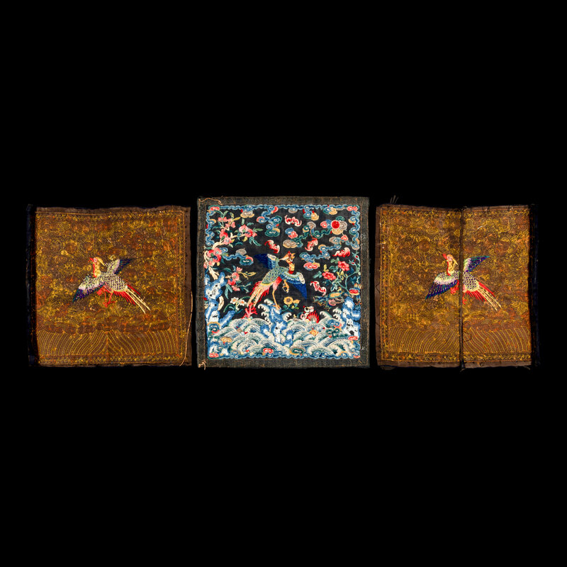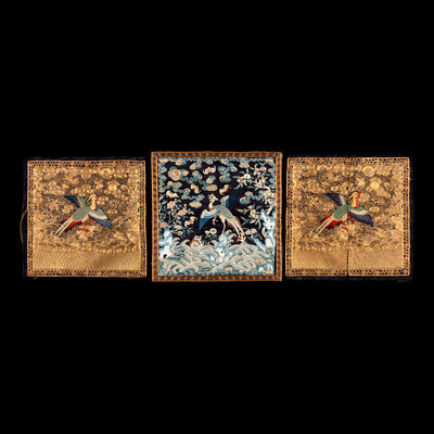 Comprising an individual example, Daoguang period (1821-1850) and a pair of late Qing dynasty example. Made for the second-rank civil officials, each is embroidered with a vibrant pheasant standing on rocks emerging from waves tossed with auspicious emblems.