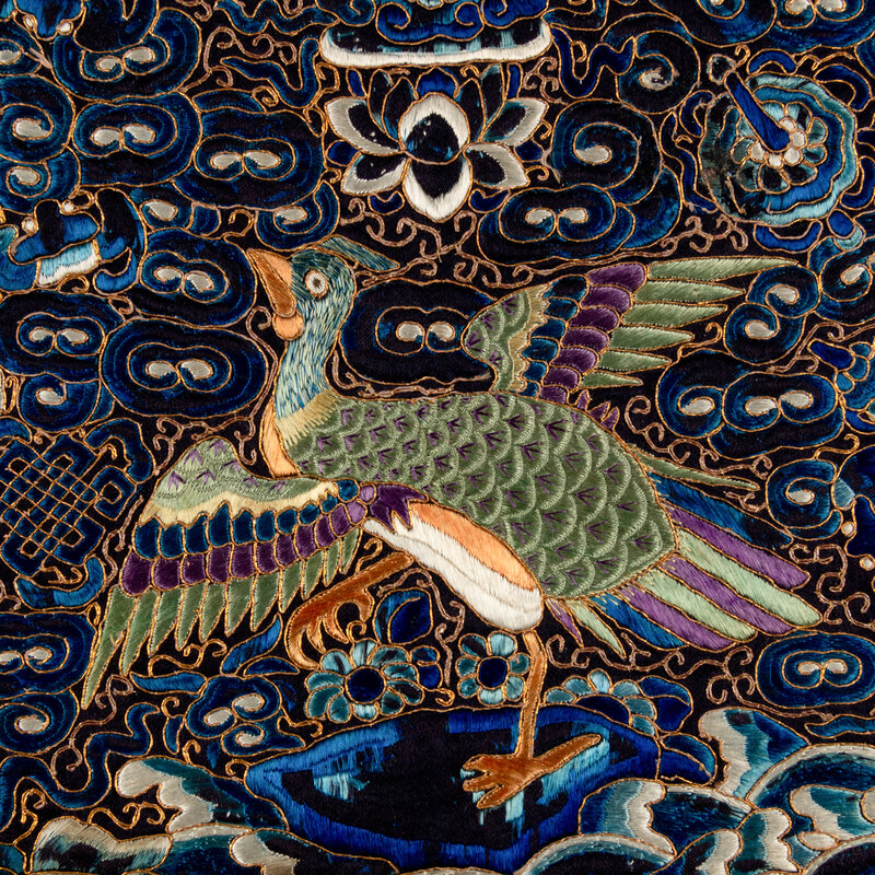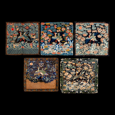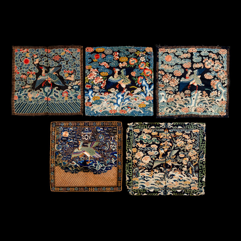 Five Chinese Embroidered Silk ‘Mandarin Duck’ Rank Badges, Buzi, 19th Century