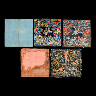 清中晚期 刺綉文官補子五幅