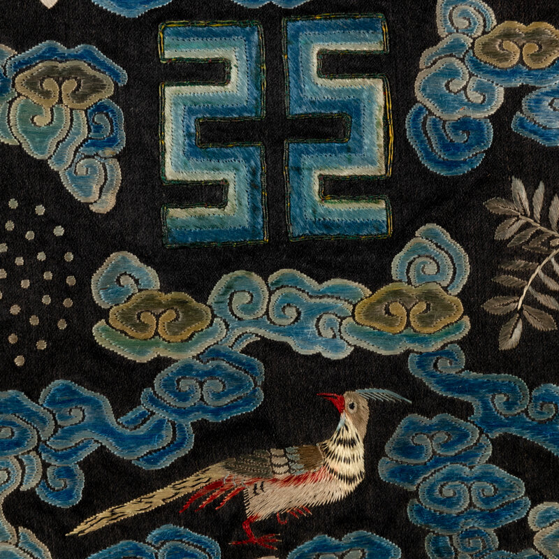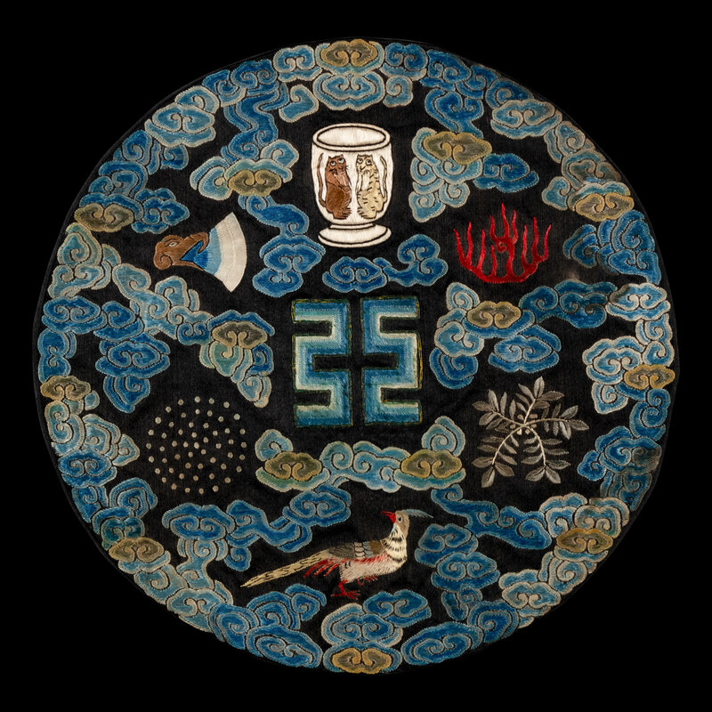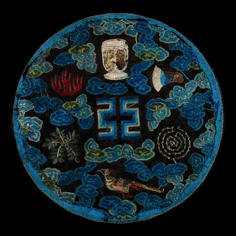 A Chinese Black Ground Embroidered Silk Roundel, Republican Period