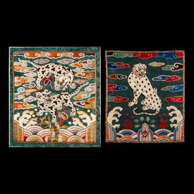 Two Korean Embroidered Silk Military Rank Badges, Hyungbae, Joseon Dynasty, 19th Century