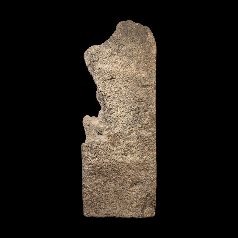 have exhibited the gesture of charity, and the left would have grasped the mongoose that was partly visible on his thigh.