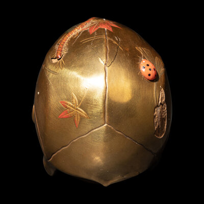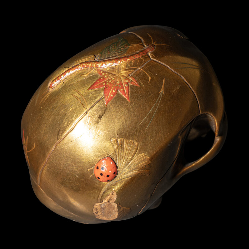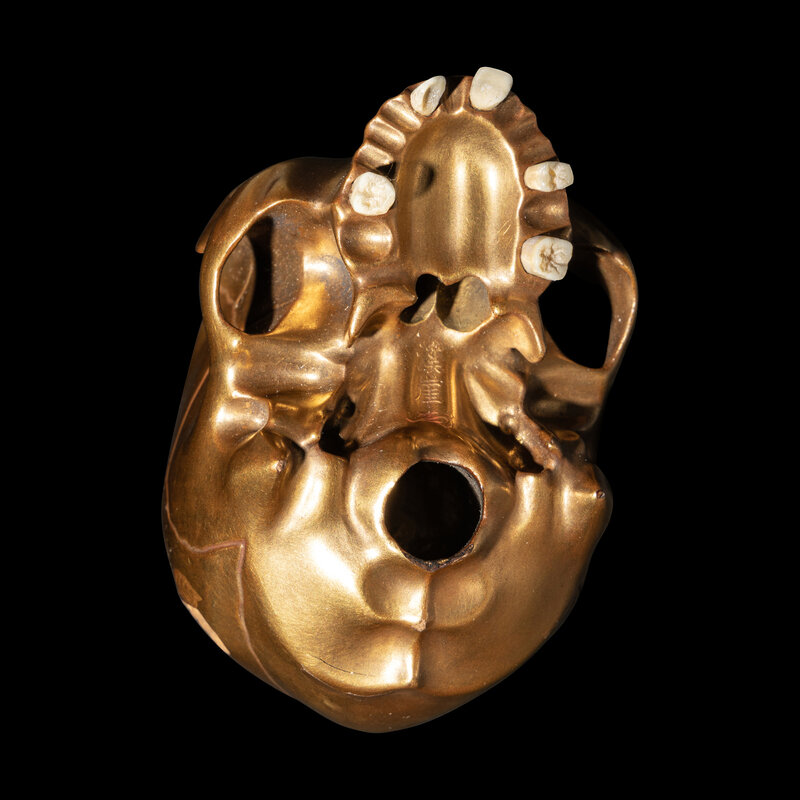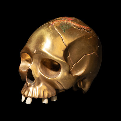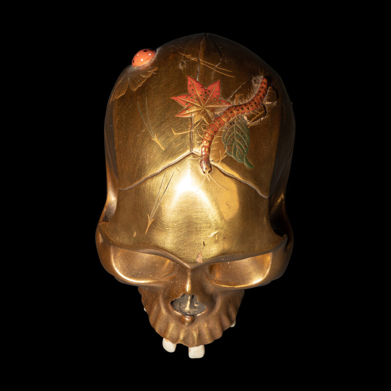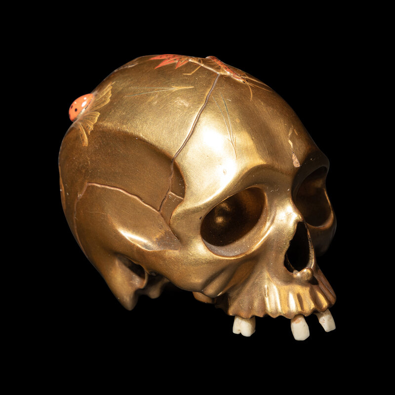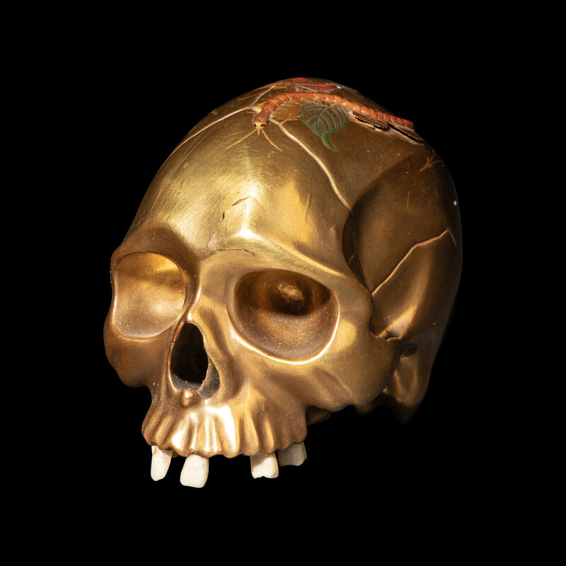 A Japanese Gold Lacquered Skull Okimono, Meiji Period, Meiji Period