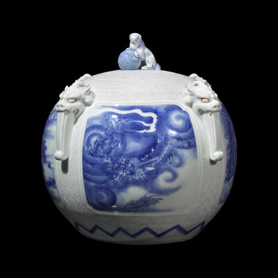 A Japanese Hirado Blue and White Porcelain Globular Jar and Cover, Meiji Period