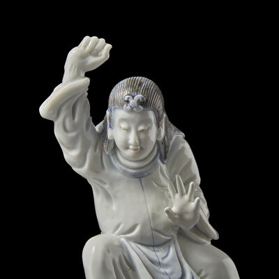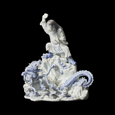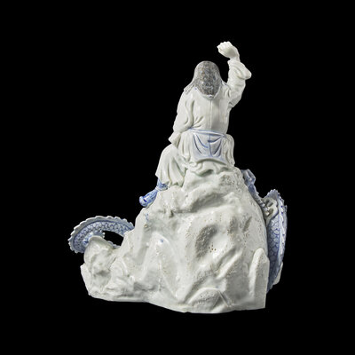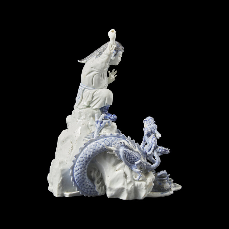 An Unusual Japanese Hirado Porcelain Okimono of Susa-no-o Slaying the Eight-Headed Dragon