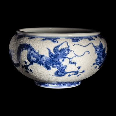 宮川香山製青花龍紋缽