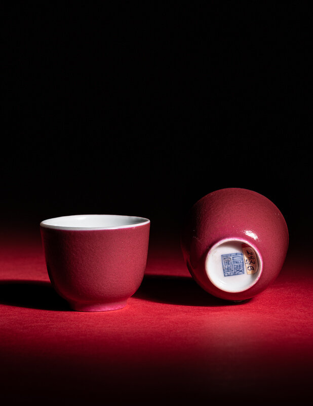A Pair of Chinese Ruby Red Glazed Porcelain Cups, Jiaqing Period