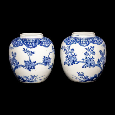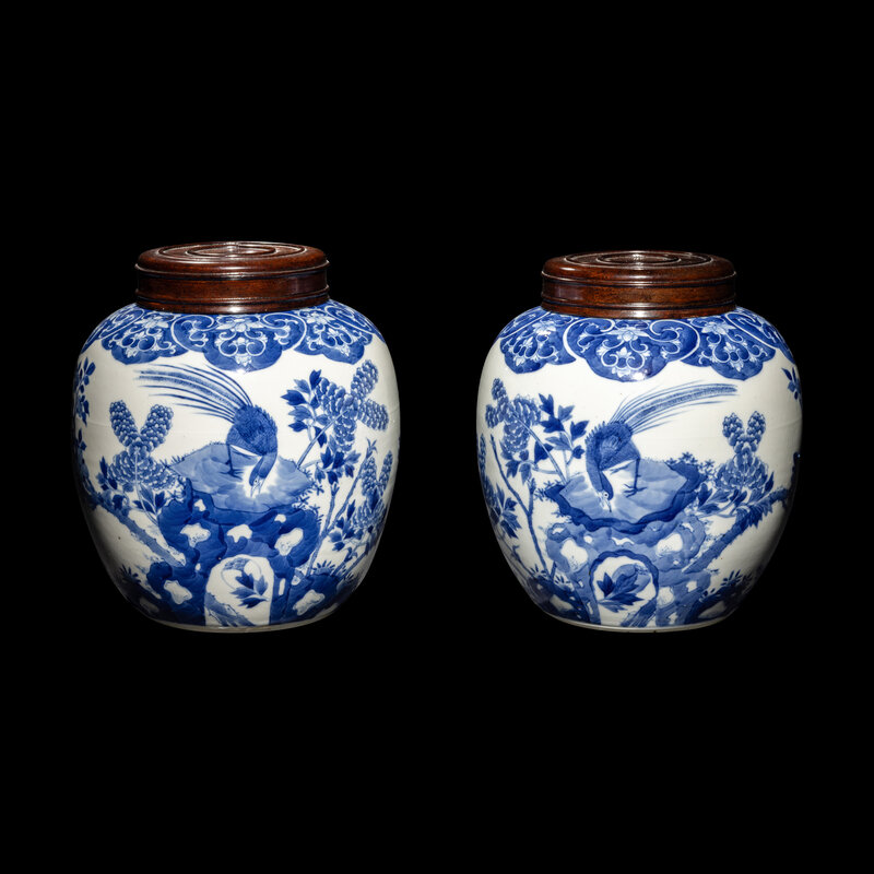 A Pair of Chinese Blue and White Porcelain 'Peonies and Pheasant' Ginger Jars, Guangxu Period
