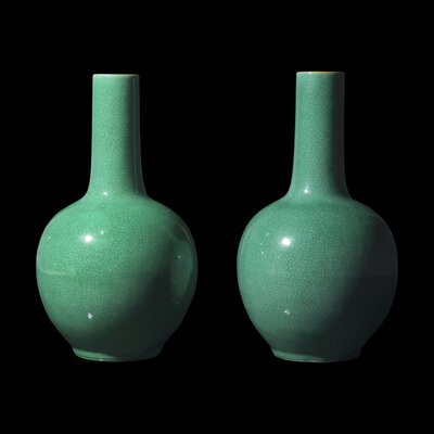 清晚期 綠釉冰裂紋天球瓶一對