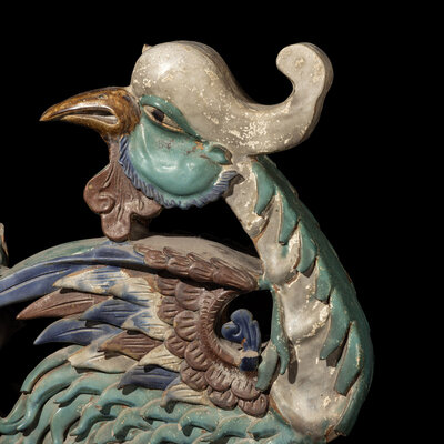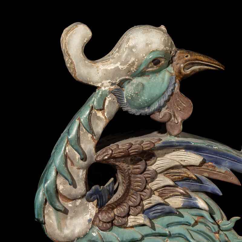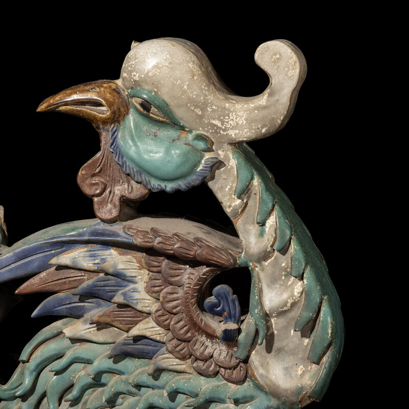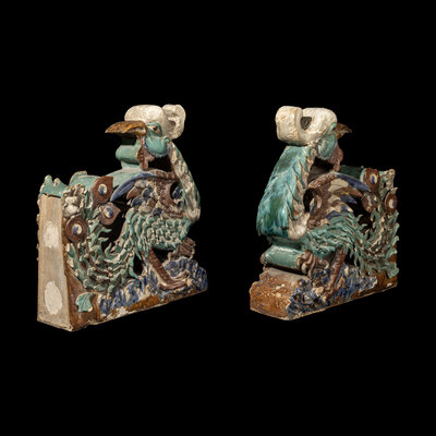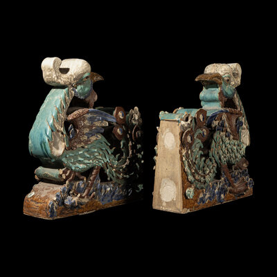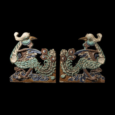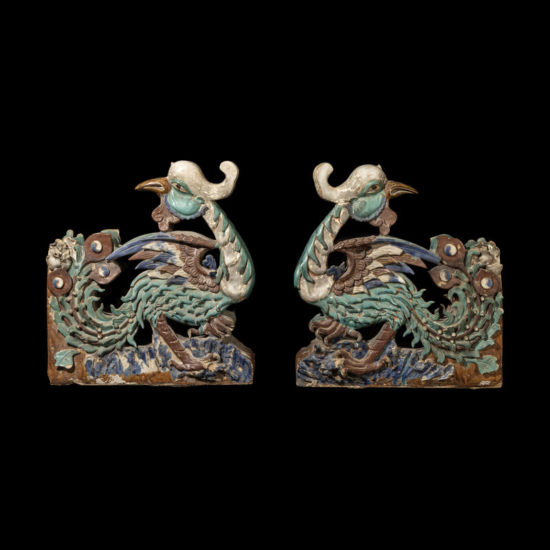 A Pair of Large Chinese Glazed Stoneware Architectural Tilework Phoenixes, Late 18th/19th Century