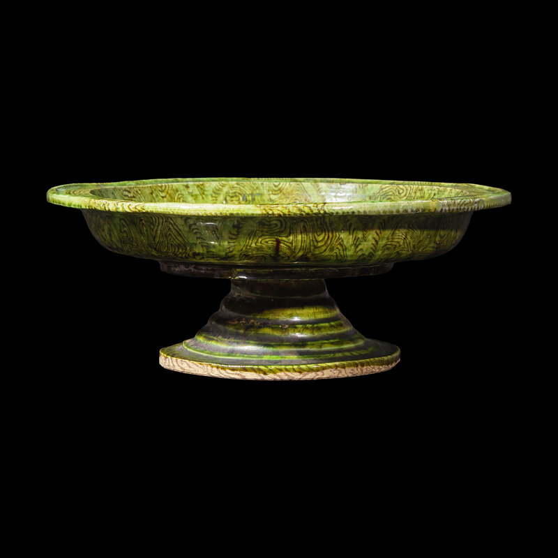 或爲唐 綠釉絞胎高足盤
