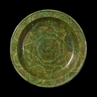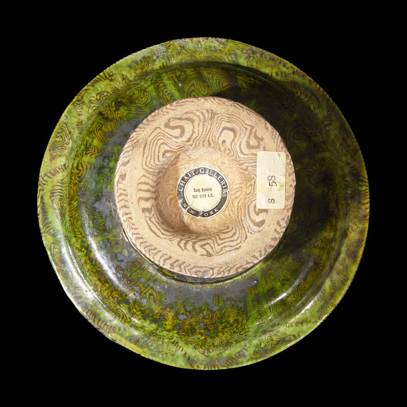 A Chinese Green Glazed Marbled Stem Dish, Possibly Tang Dynasty
