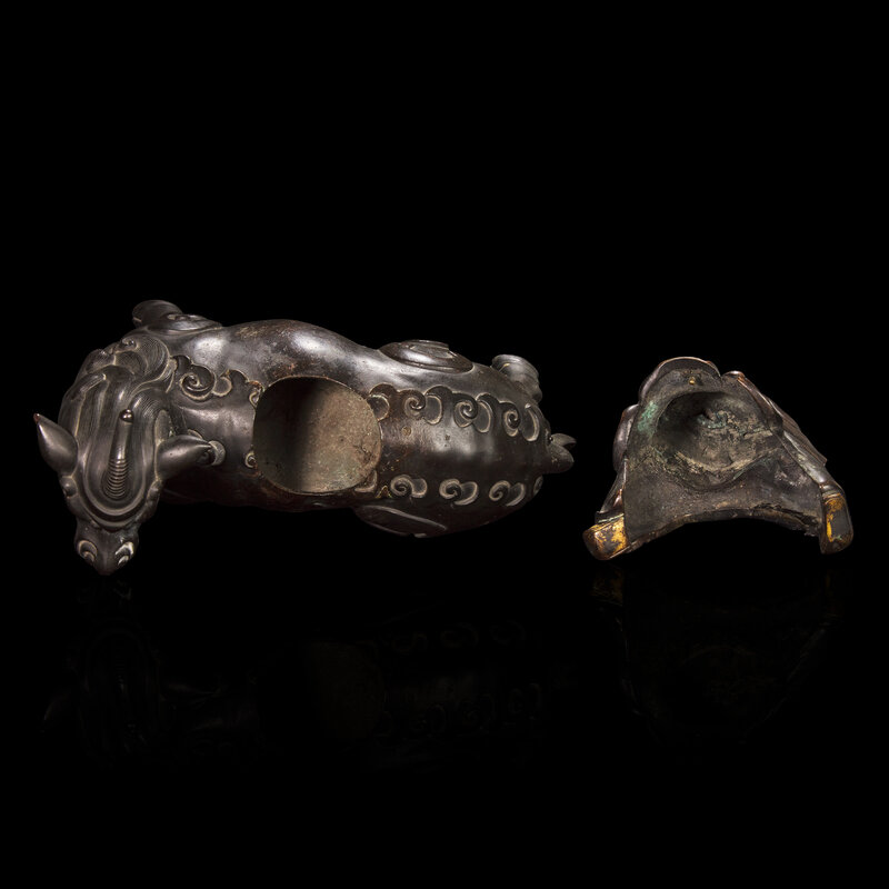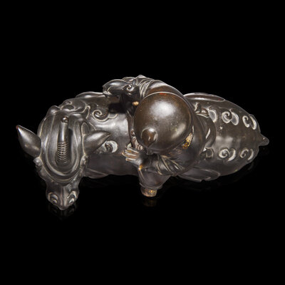 A Chinese Patinated and Parcel-gilt Bronze 'Qilin and Boy' Censer, 17th/18th Century